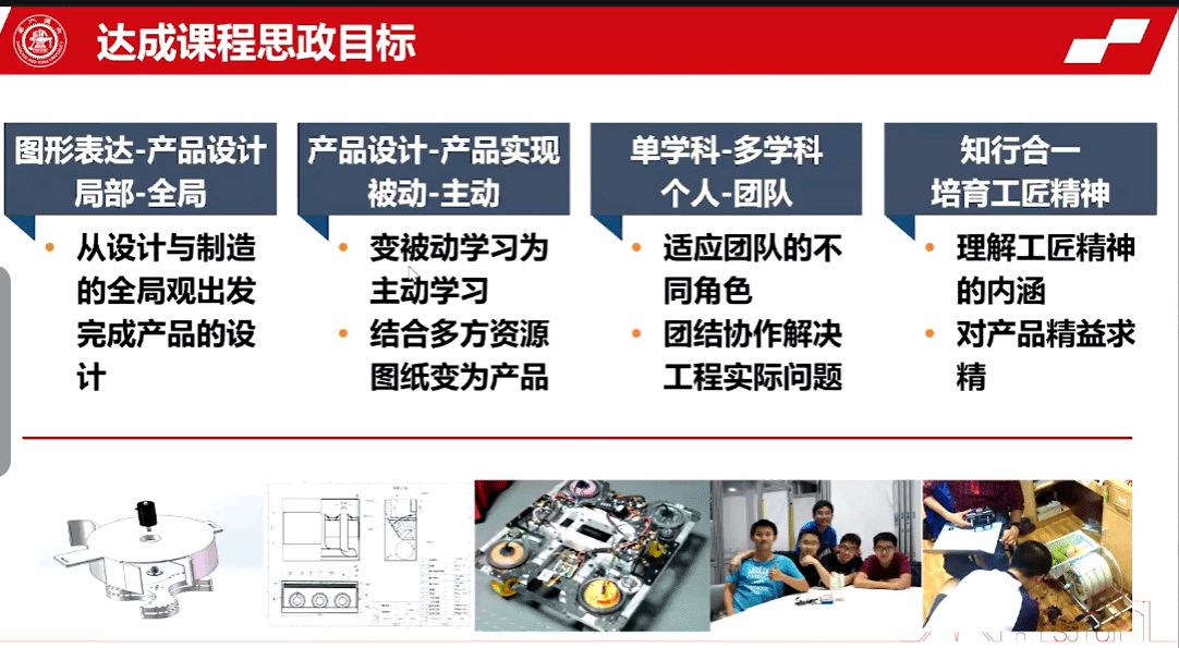 报告会上,来自华中科技大学马克思主义学院的夏增民教授,讲述了课程思政建设已进入新阶段,从政治性、专业性、教育学等角度重申课程思政建设应坚持的原则。上海交通大学机械与动力工程学院的蒋丹教授,讲述了课程思政的整体设计,以及在课程中挖掘思政元素,并在课程教学中落实。天津大学电气自动化与信息工程学院的刘艳丽教授,阐释了课程思政的基本内涵,解读各类专业课课程思政建设方向和要点,分享专业课课程思政优秀教学案例。华中科技大学机械科学与工程学院的阮春红教授,解读了课程思政的相关文件,以辨证思维的应用为切入点,结合图学发展史、工业软件发展史及国产软件操作、相关国之重器的研发历程等开展教学实践,培养学生辩证思维、追求真理的科学精神、精益求精的工匠精神,将课程思政贯彻教学全程。