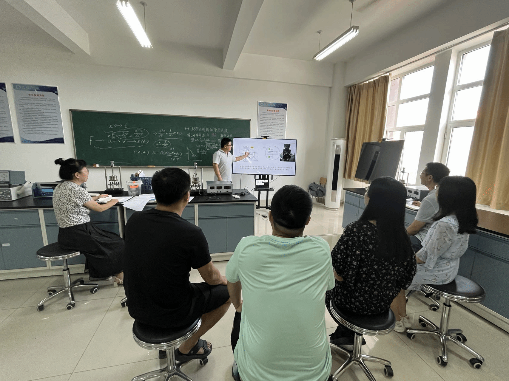 活动中,4位教师对大学物理和大学物理实验课程的下学期重点授课内容进行了展示教学。授课教师活动前对教学内容进行了充分准备,反复推敲合适的教学方法;活动中,授课教师全面展示了备课成果,讲解深入、方法灵活;其他教师认真聆听,深入讨论,指出优点和不足。最后,王侠主任和孙刚老师对授课情况进行了点评。