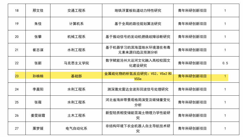 近日,我院科技处公布了《英国365集团关于2024年度基本科研业务费项目立项名单的公示》,英国上市365孙楠楠老师的《金属硫化物的析氢反应研究:VS2、VSe2和VSSe》获批青年科研创新项目1项,资助经费1万元。