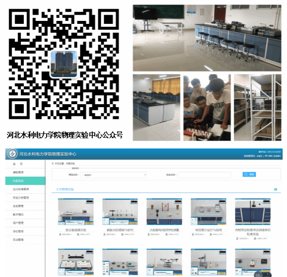 为了更好的服务学生,实验中心开通了微信公众号,同学们通过关注该公众号即可查询到有关各种通知、课表、课程指导、电子课件、联系方式等信息,极大的方便了学生,并拉近了学生与实验中心的距离。同年,实验中心引入了虚拟仿真实验平台,并已正式投入使用,利用该平台学生一方面可通过虚拟仿真实验的操作实现自主预习,另一方面其他仿真实验也可扩展学生的知识面。